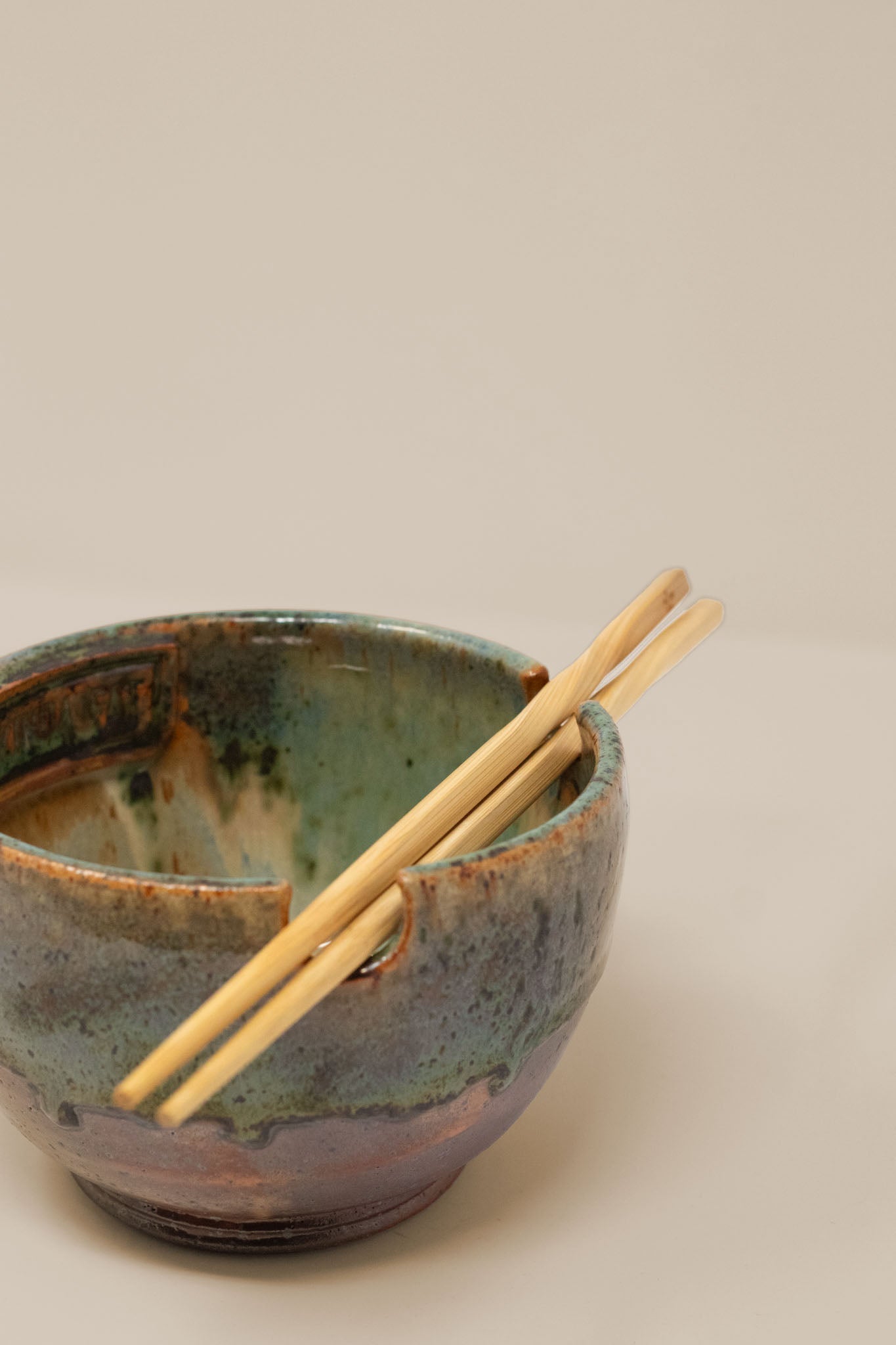 Featured here is 1 of 10 deliciously made ceramic ramen bowls by local artist and talented potter: Clayclops Ceramics.