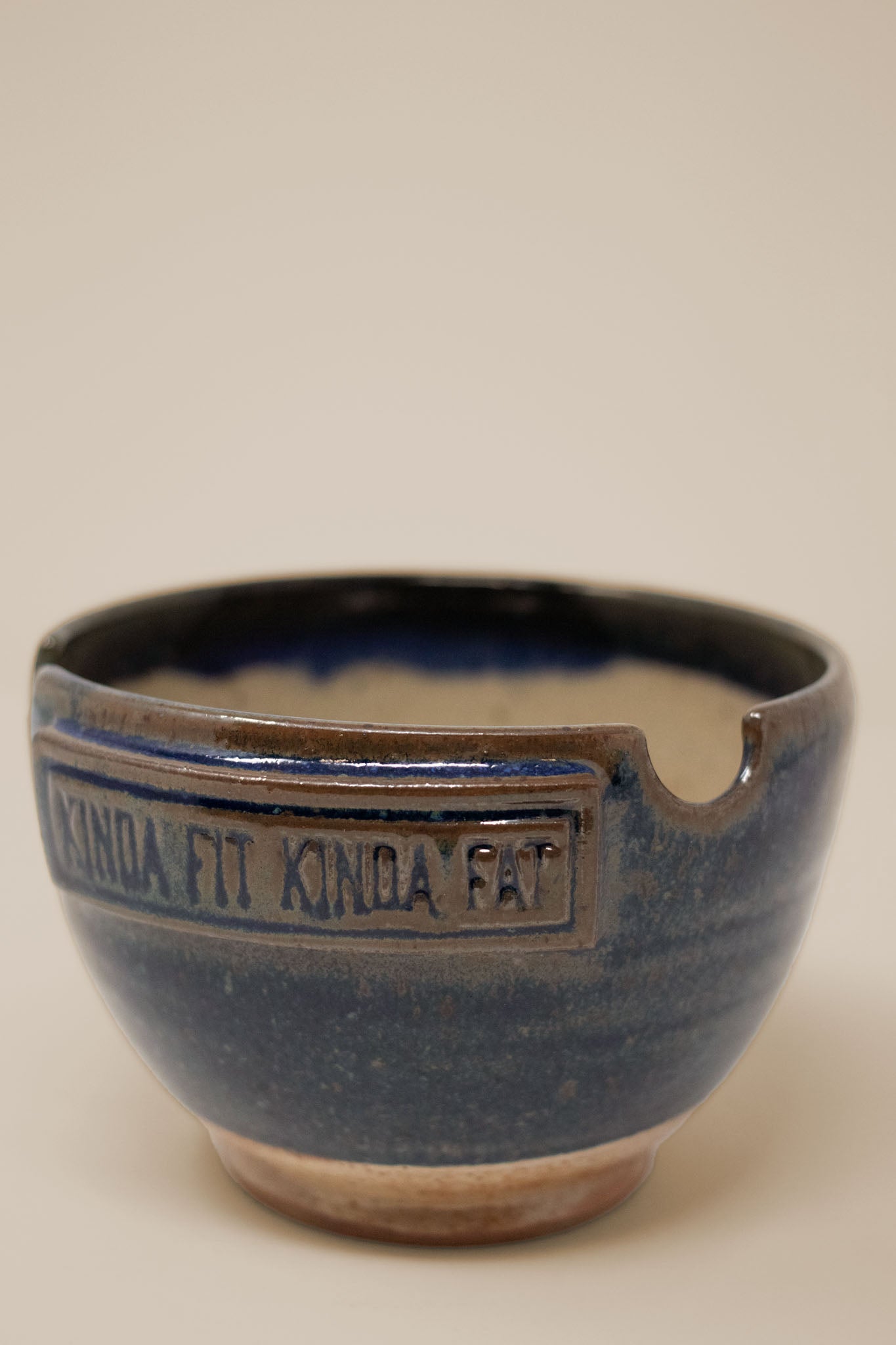 Each bowl represents a blend of functionality and high quality artistry — featuring grooves for chopsticks, our custom Kinda Fit Kinda Fat Bar Logo, and unique hand glazed marbling — making each collectible piece a genuine 1-of-1.