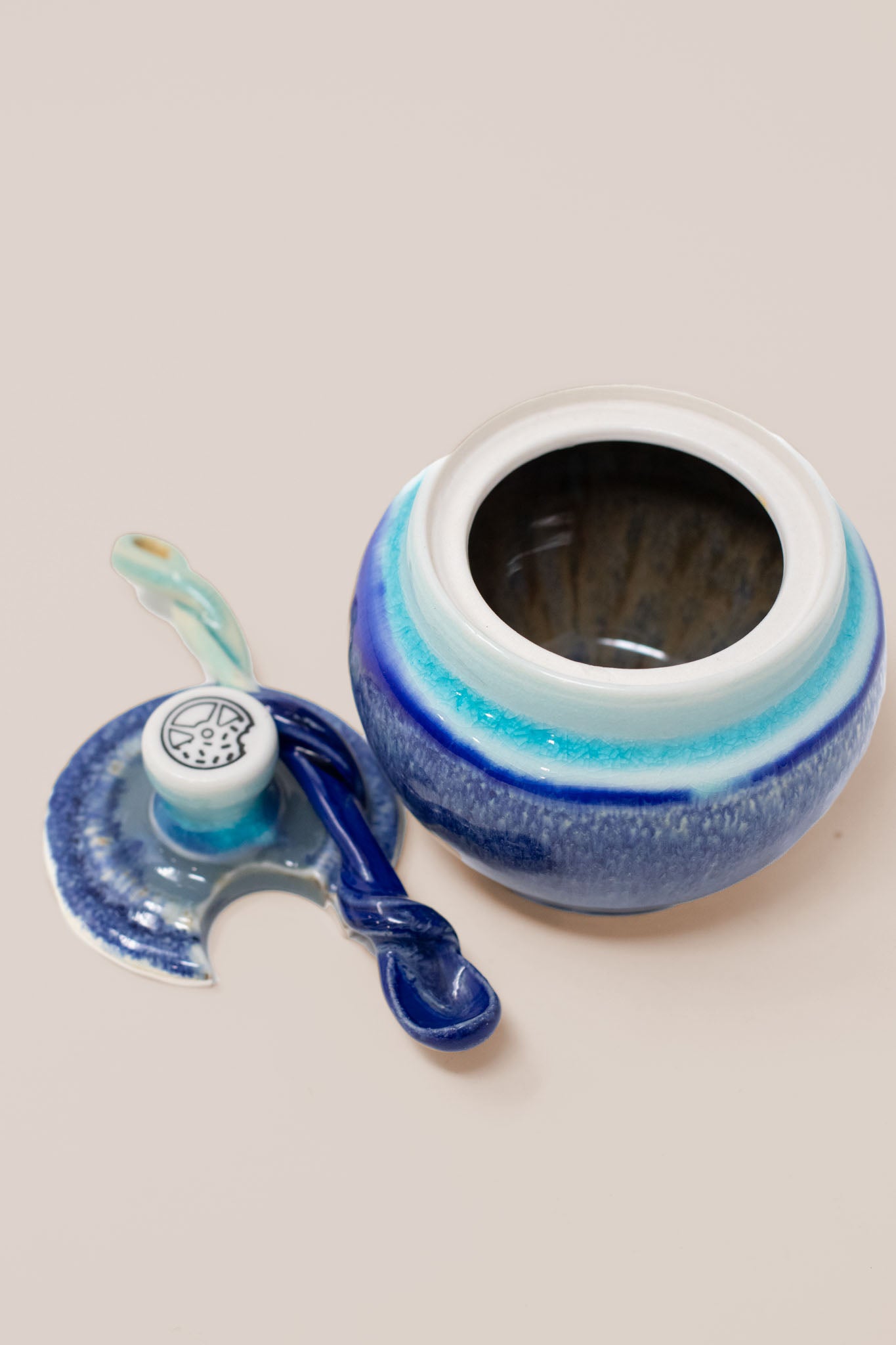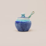 Handcrafted from high quality porcelain, every jar is deliciously glazed to perfection, delectably food safe, and comes with a matching lid and a hand pulled twisted spoon.