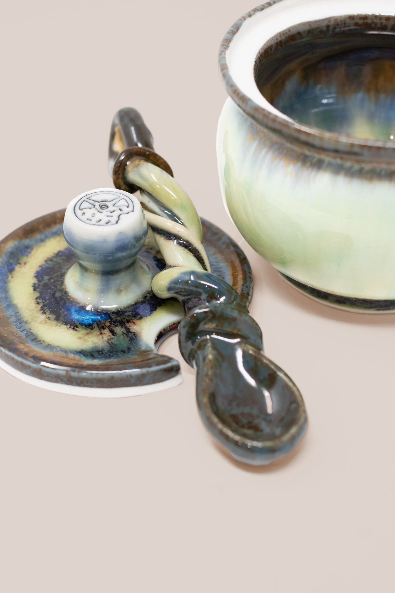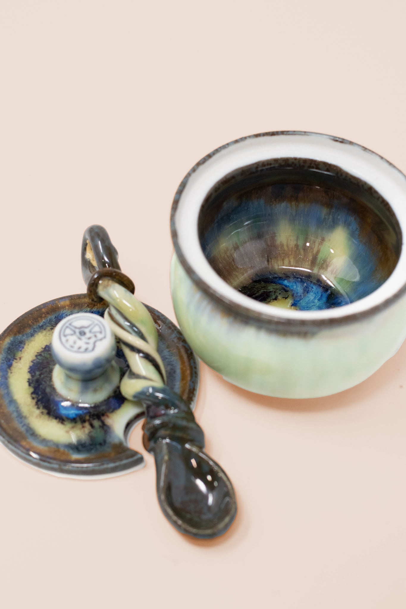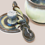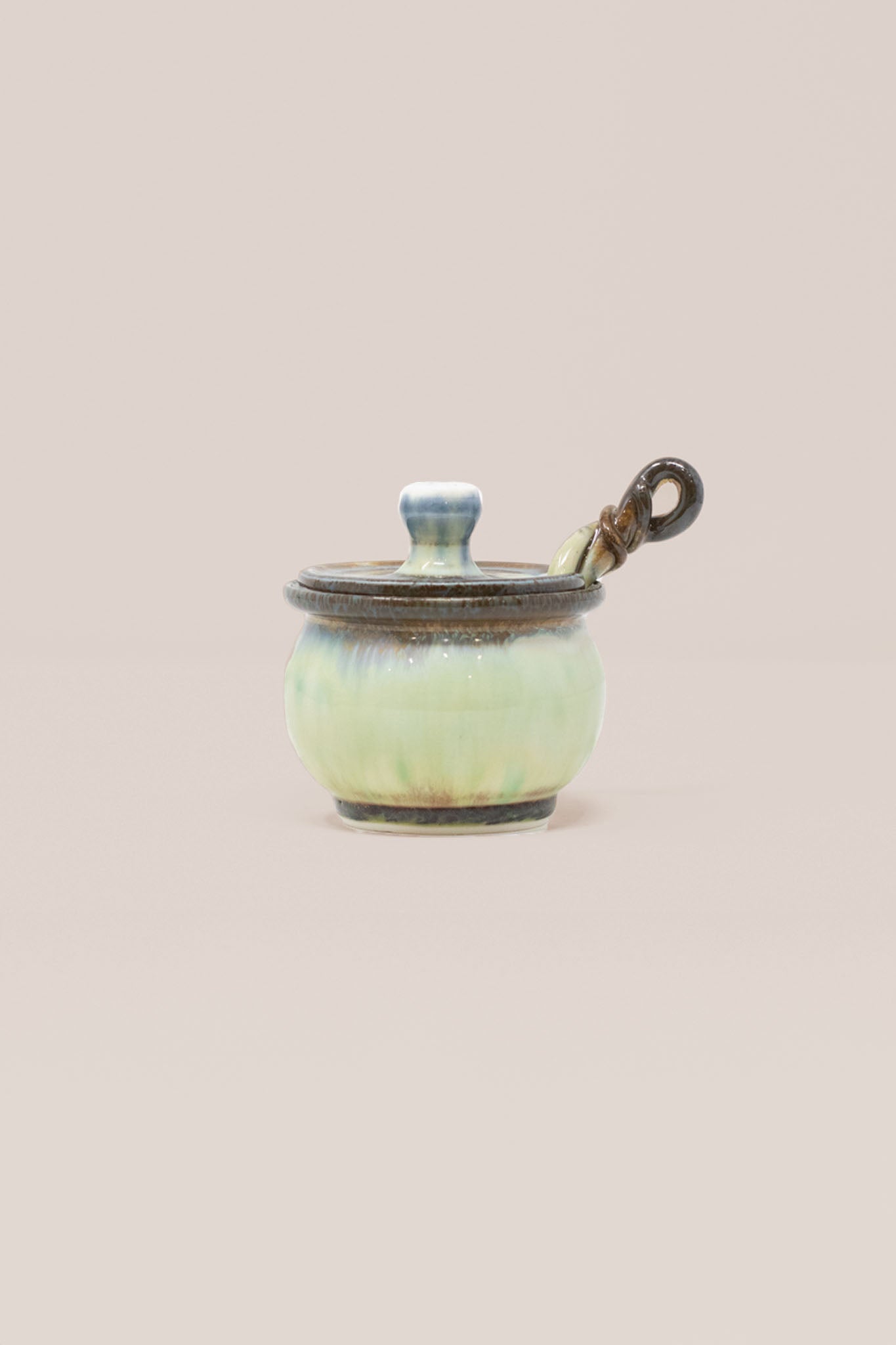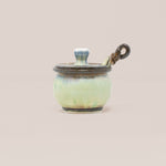 Handcrafted from high quality porcelain, every jar is deliciously glazed to perfection, delectably food safe, and comes with a matching lid and a hand pulled twisted spoon.