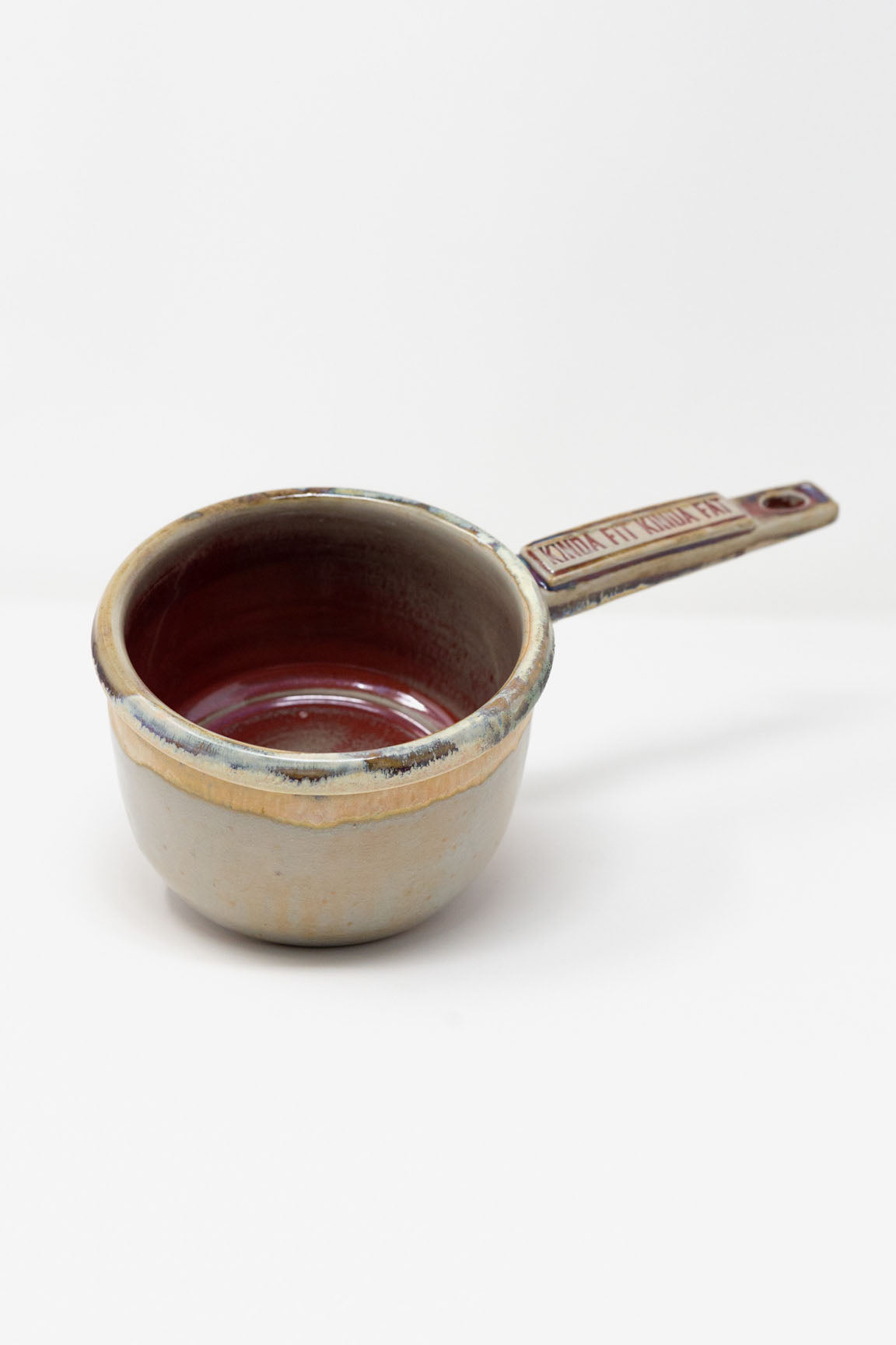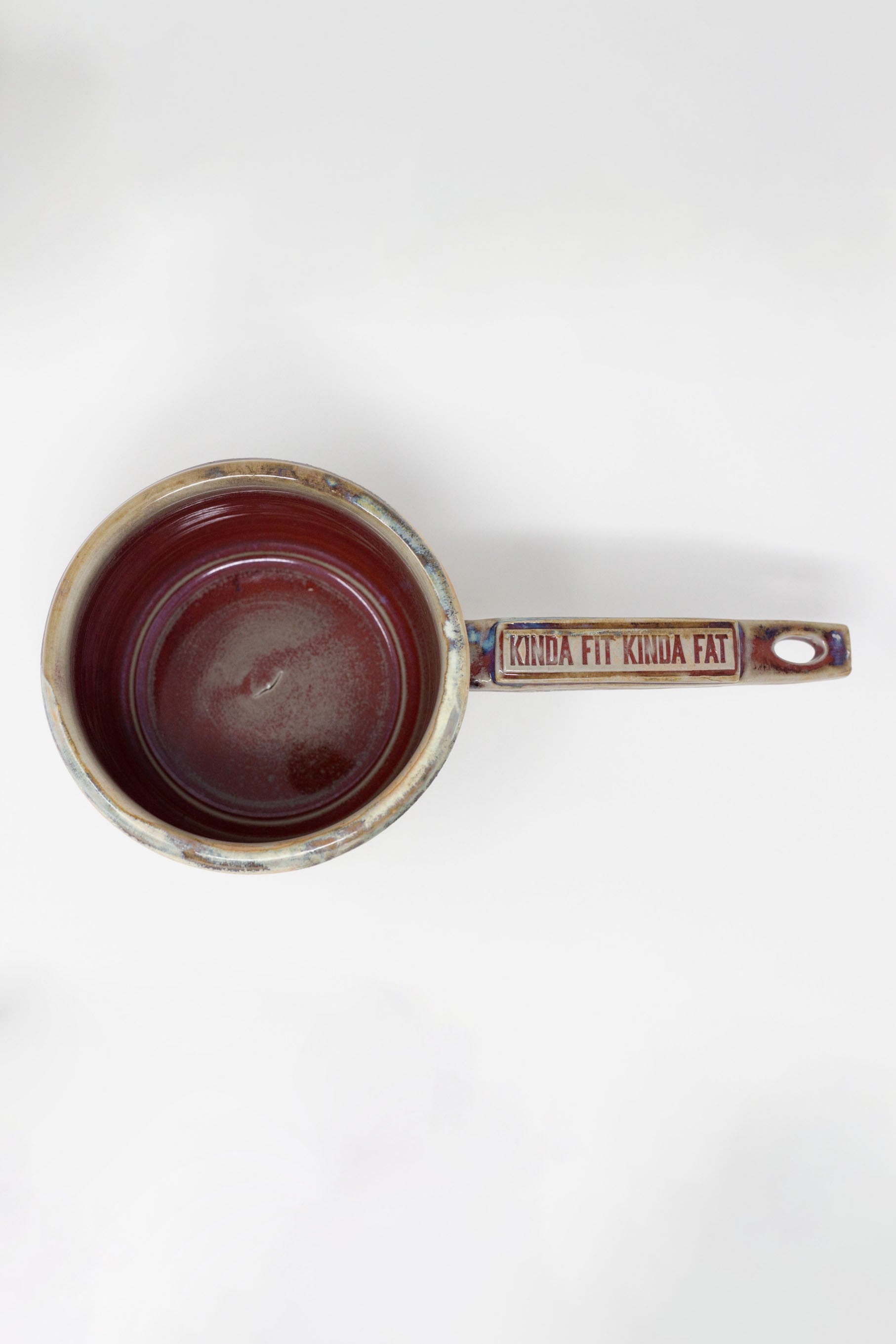 Our first specialty item on the Gourmet Gainz: Masterbaker’s Special Menu is "Minatamis Na Tabo" (translated to “sweetened ladle”). Featured here is 1 of 8 deliciously handcrafted ceramic tabos each representing a blend of functionality and quality artistry. Every tabo features a custom Kinda Fit Kinda Fat bar logo handle and a unique handglazed marbling, making each collectible piece a genuine 1-of-1.