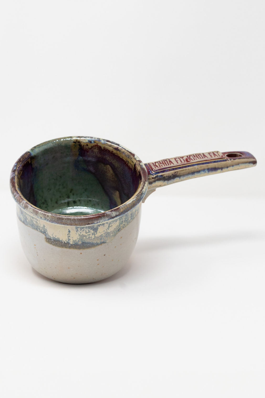 Our first specialty item on the Gourmet Gainz: Masterbaker’s Special Menu is "Minatamis Na Tabo" (translated to “sweetened ladle”). Featured here is 1 of 8 deliciously handcrafted ceramic tabos each representing a blend of functionality and quality artistry. Every tabo features a custom Kinda Fit Kinda Fat bar logo handle and a unique handglazed marbling, making each collectible piece a genuine 1-of-1.