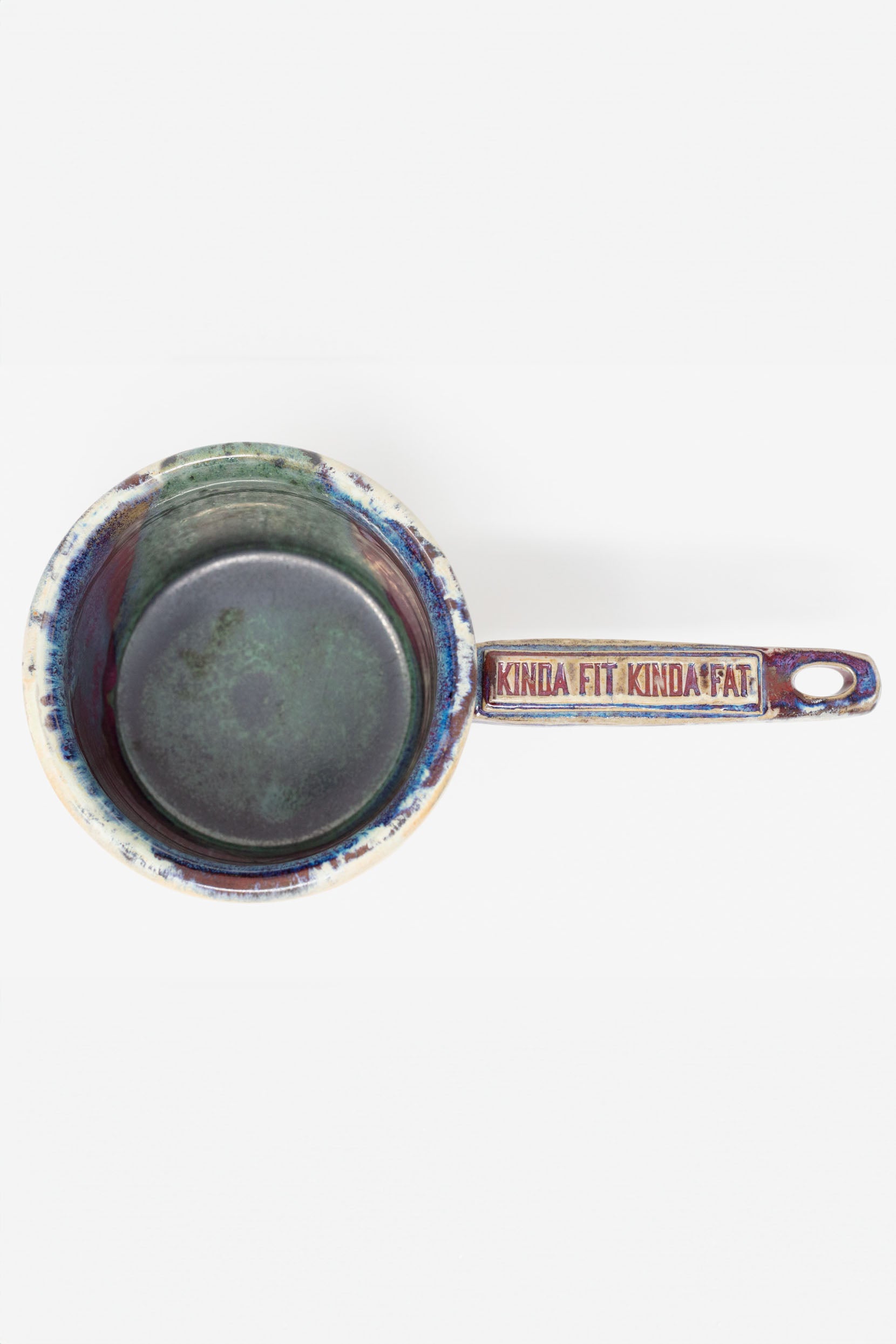 Our first specialty item on the Gourmet Gainz: Masterbaker’s Special Menu is "Minatamis Na Tabo" (translated to “sweetened ladle”). Featured here is 1 of 8 deliciously handcrafted ceramic tabos each representing a blend of functionality and quality artistry. Every tabo features a custom Kinda Fit Kinda Fat bar logo handle and a unique handglazed marbling, making each collectible piece a genuine 1-of-1.