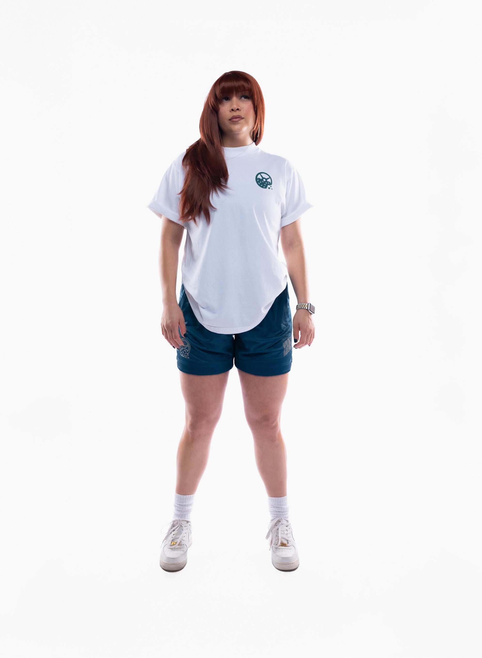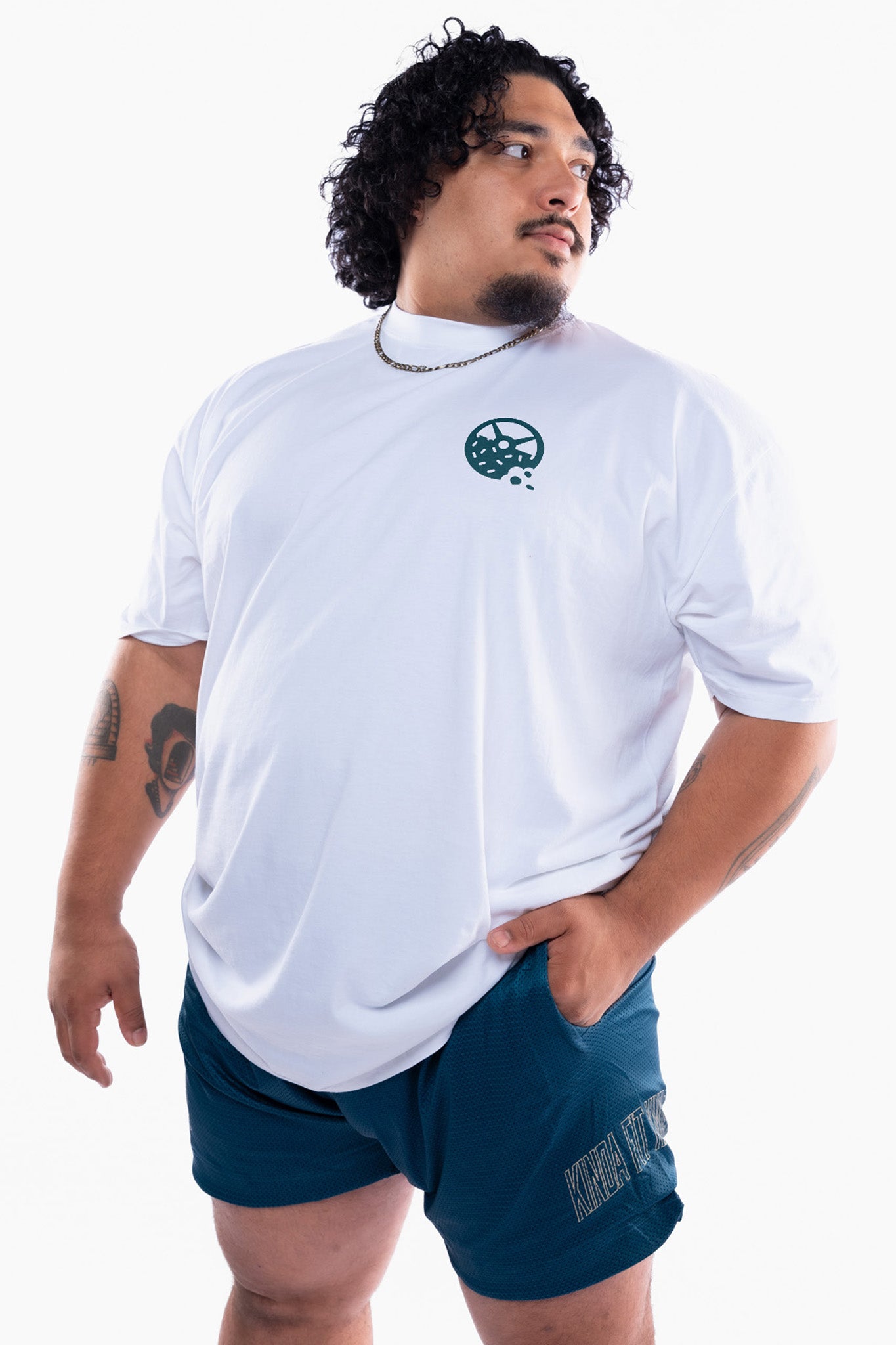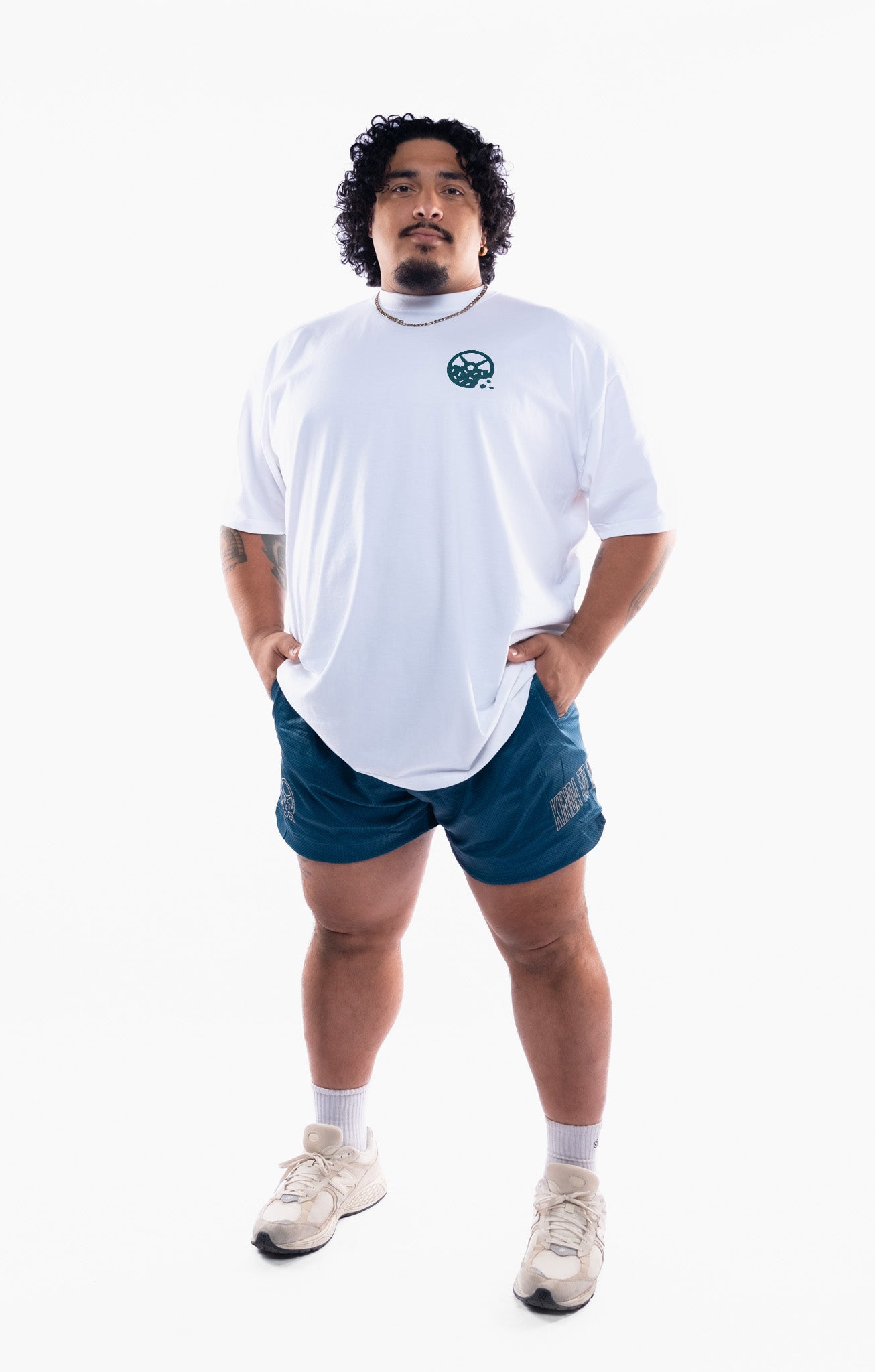 Printed locally with high quality silk screen ink, this premium oversized pump cover features 100% max heavyweight pre-shrunk cotton, a reinforced collar, drop shoulder sleeves, and a boxy streetwear fit. Don't forget to match it with our teal shorts!