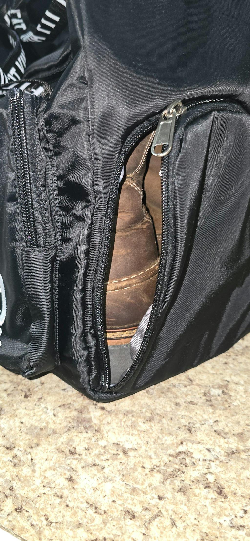 My thought process behind it; The gym bag is to carry gym clothes and potentially work clothes and gear when I'm making the gym a stop to and or from work. Now my boots fit but they are tight so moving forward a version 2.0 if we can make the overall bag 3 in wider and maybe an inch or so taller? Just to accommodate bulkier shoes like standard work boots and I don't have a huge foot either it's only a size 11. The bag will absolutely zip, so it's not critical. Loading and unloading is inconvenient, and I am being SUPER NIT-PICKY!