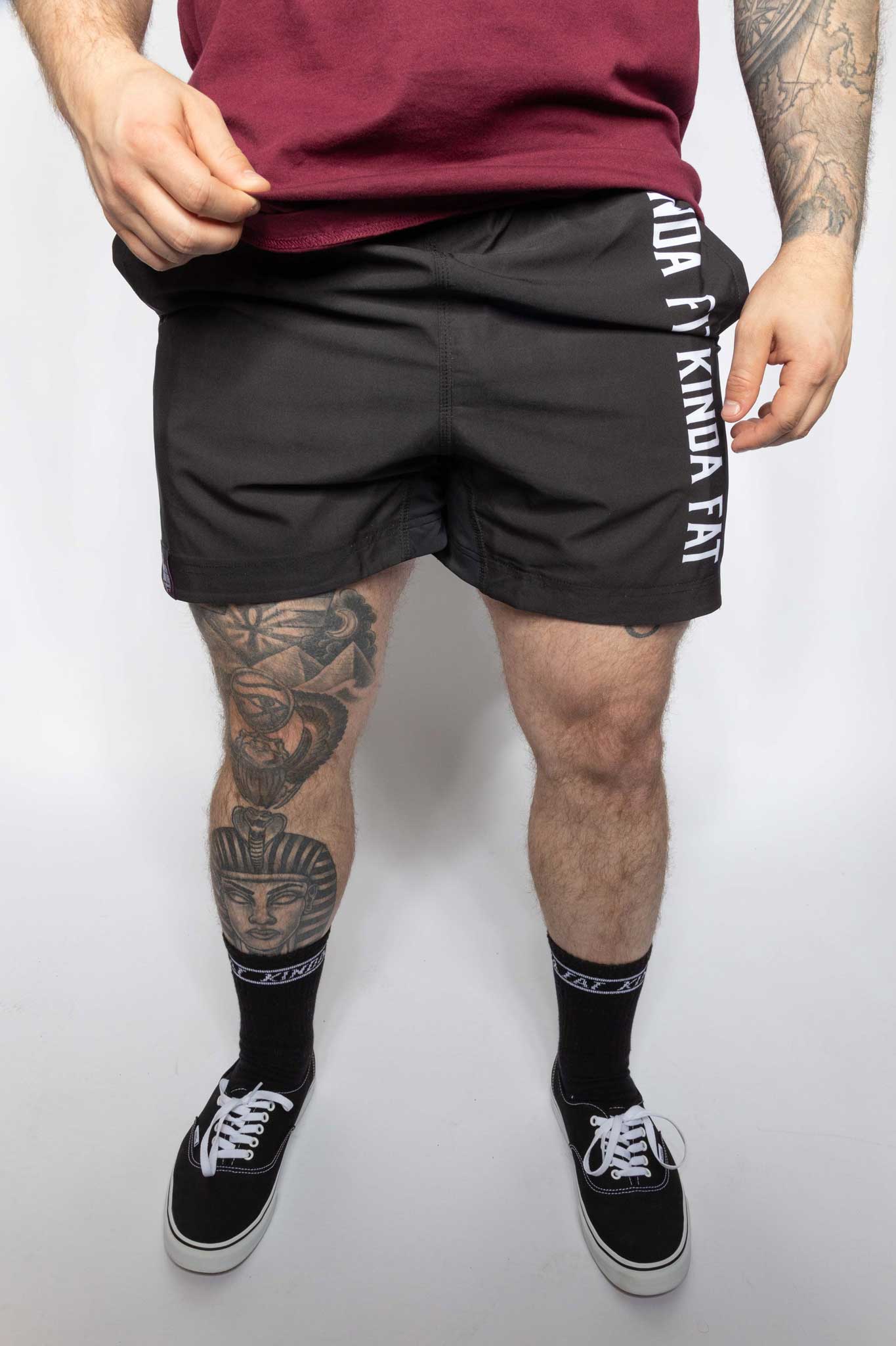 These Kinda Fit Kinda Fat training shorts are the most comfortable bottoms you'll workout in. Your cakes will love squatting in these! With a stretch bottom, movement has never been easier. Whether you're grabbing some food or getting a sweaty lift in, these shorts will be your all around go-to!