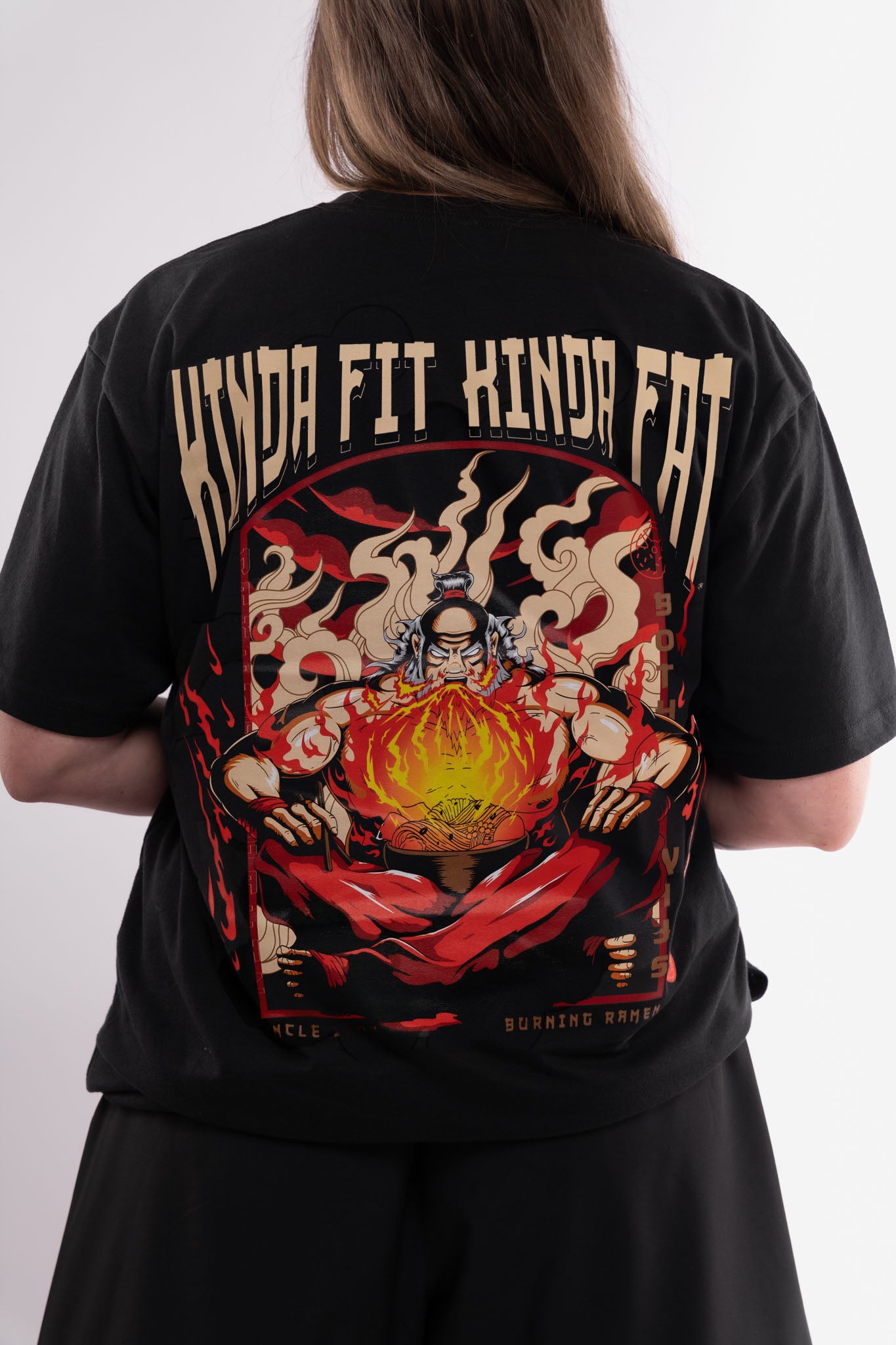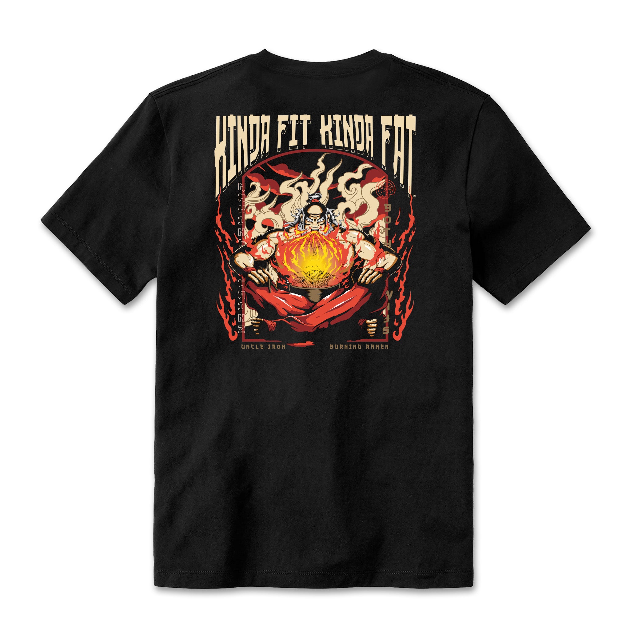 Bend your gainz with the fiery Uncle Iron! This size inclusive shirt is packed with delicious flames and burning ramen for the ultimate fire gainz.