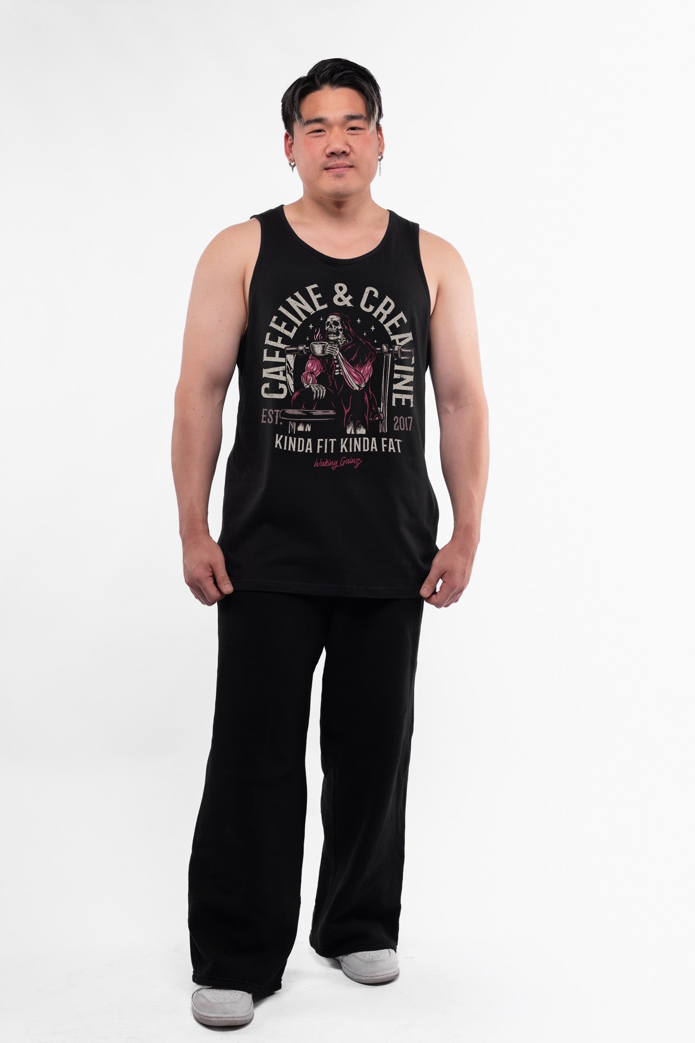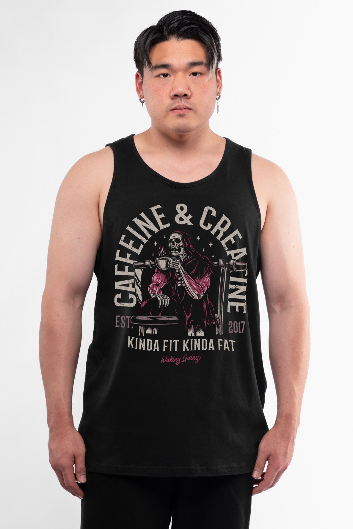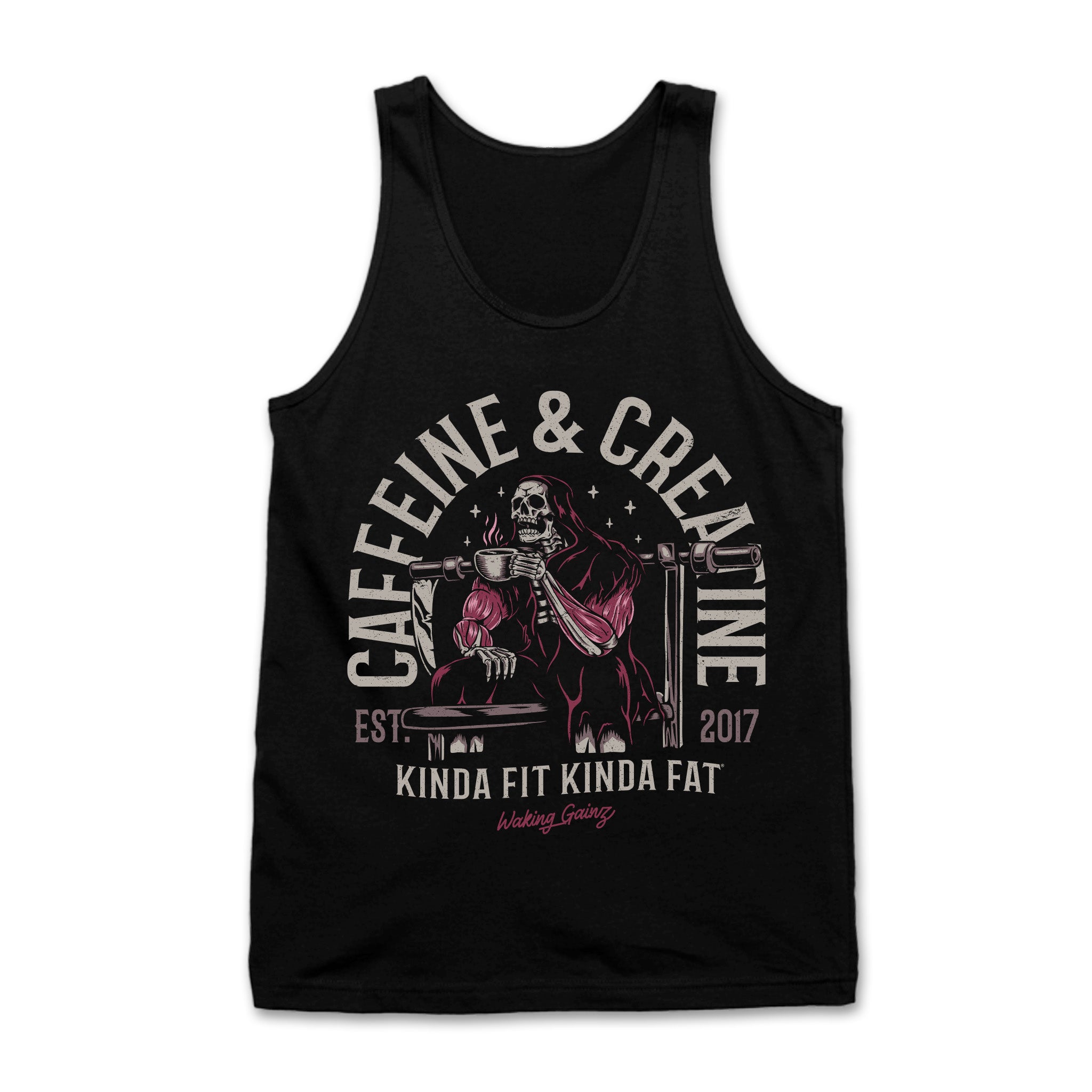 Fuel your morning grind with Caffeine and Creatine — a heavy hitting homage for the sleep deprived savages who crush cups of brew so strong, it’ll wake you from your grave! Show off your waking gainz with a tank top for intense anabolic pumps!
