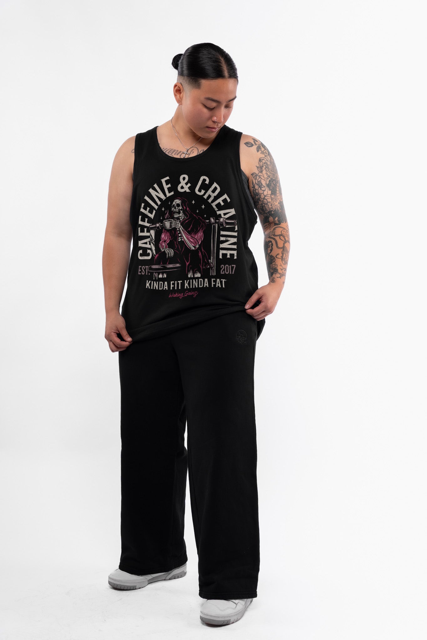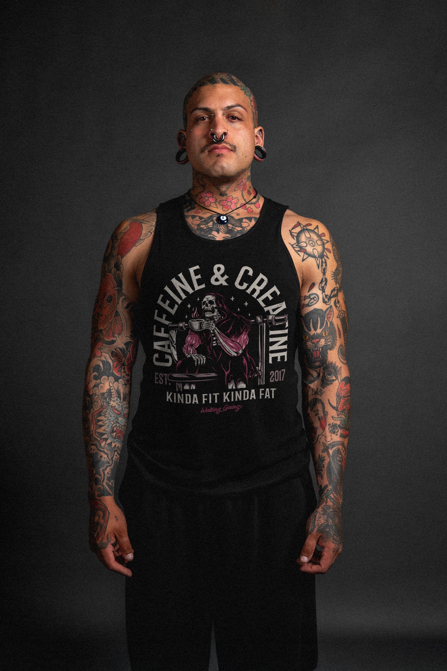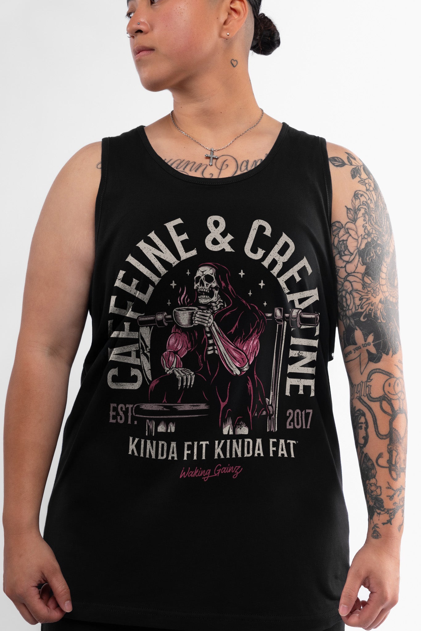 Fuel your morning grind with Caffeine and Creatine — a heavy hitting homage for the sleep deprived savages who crush cups of brew so strong, it’ll wake you from your grave! Show off your waking gainz with a tank top for intense anabolic pumps!