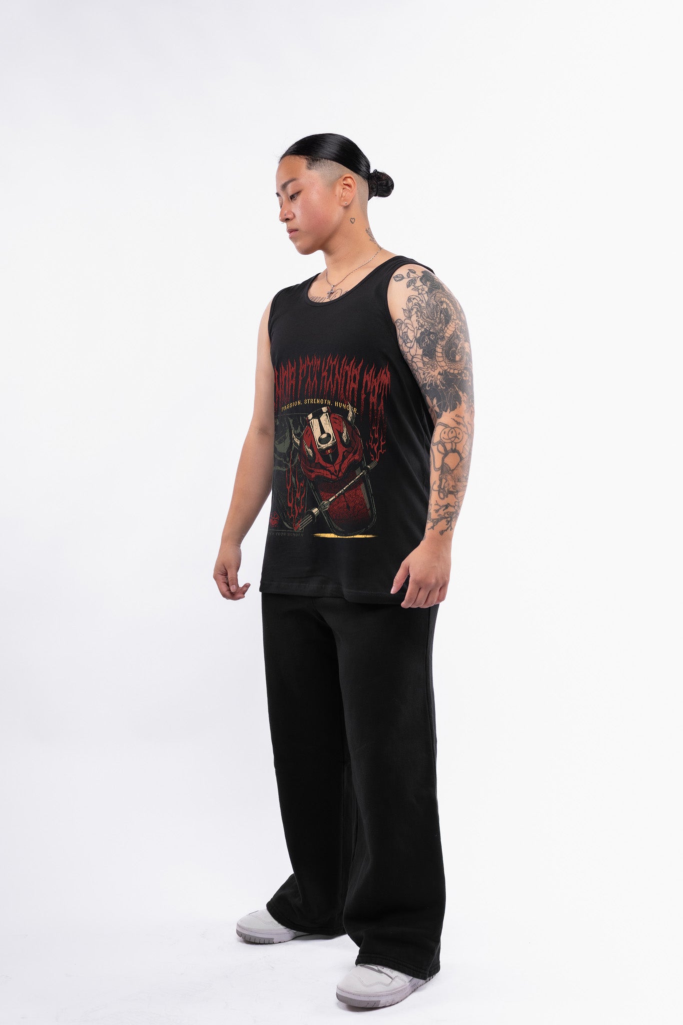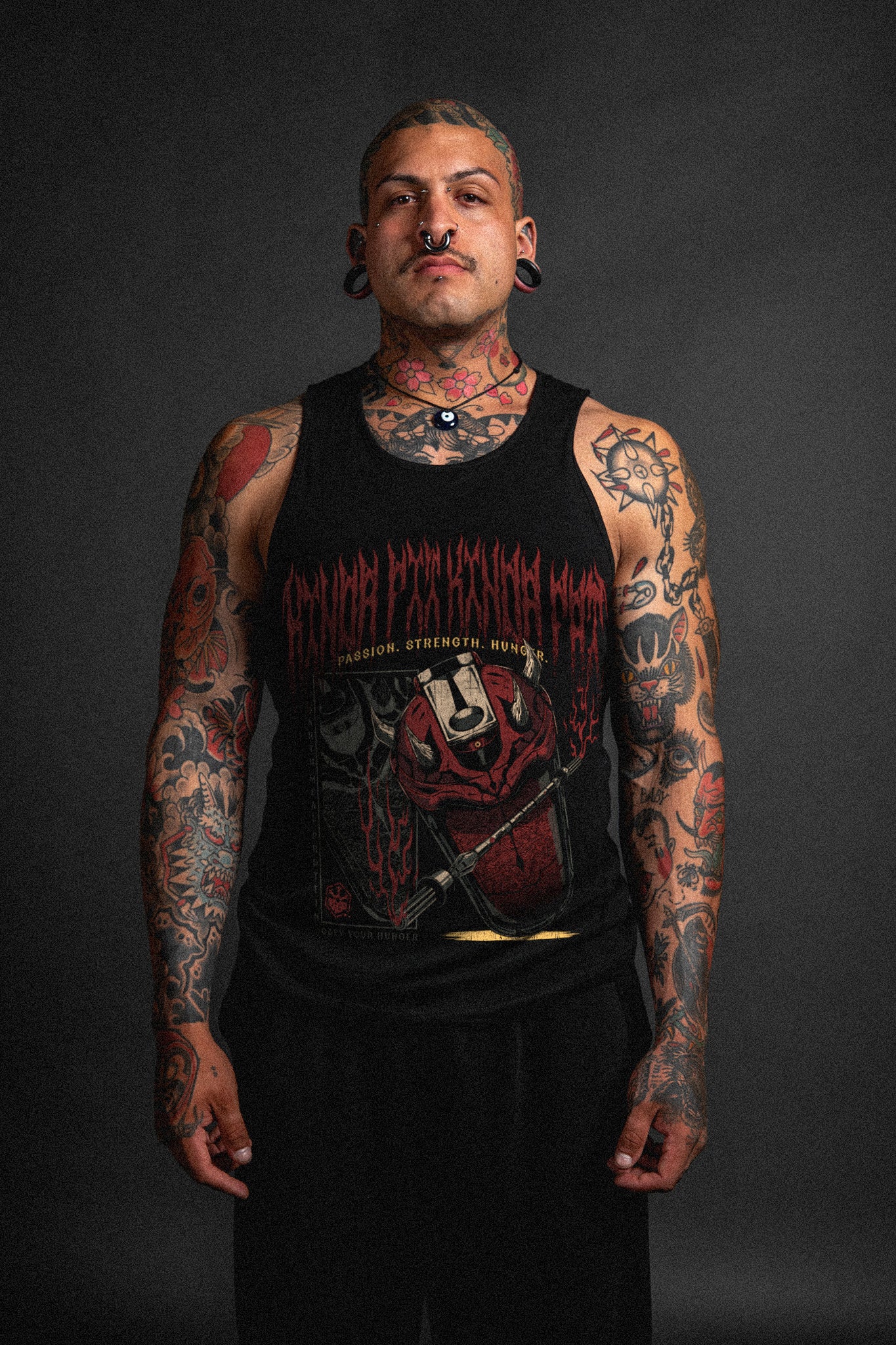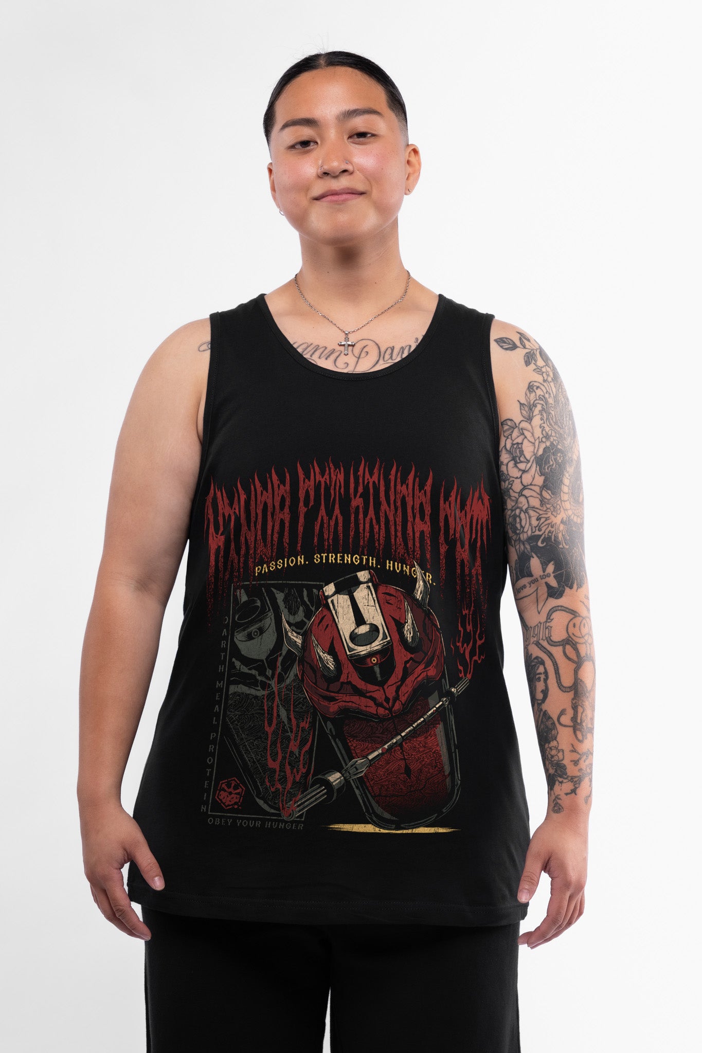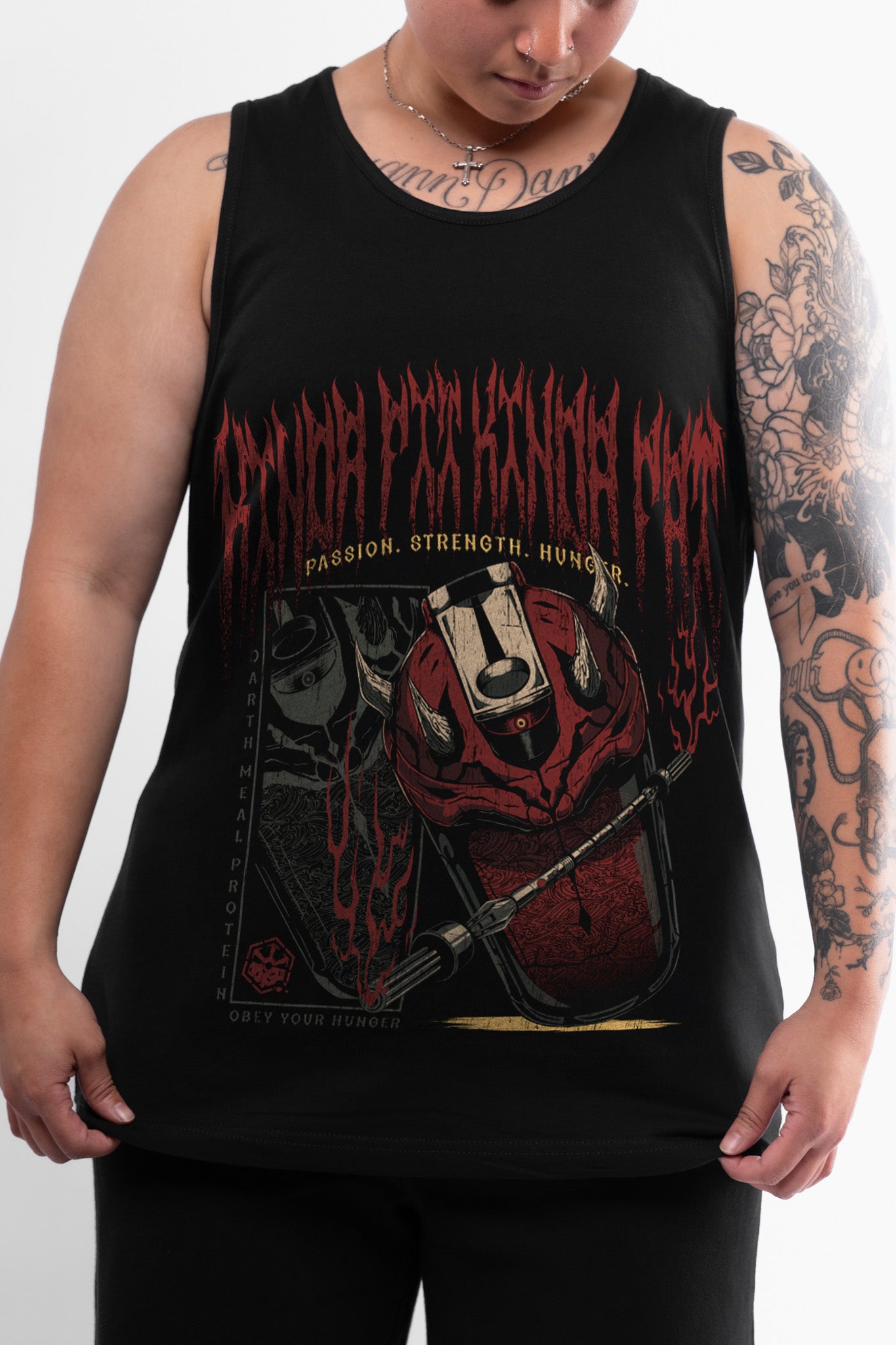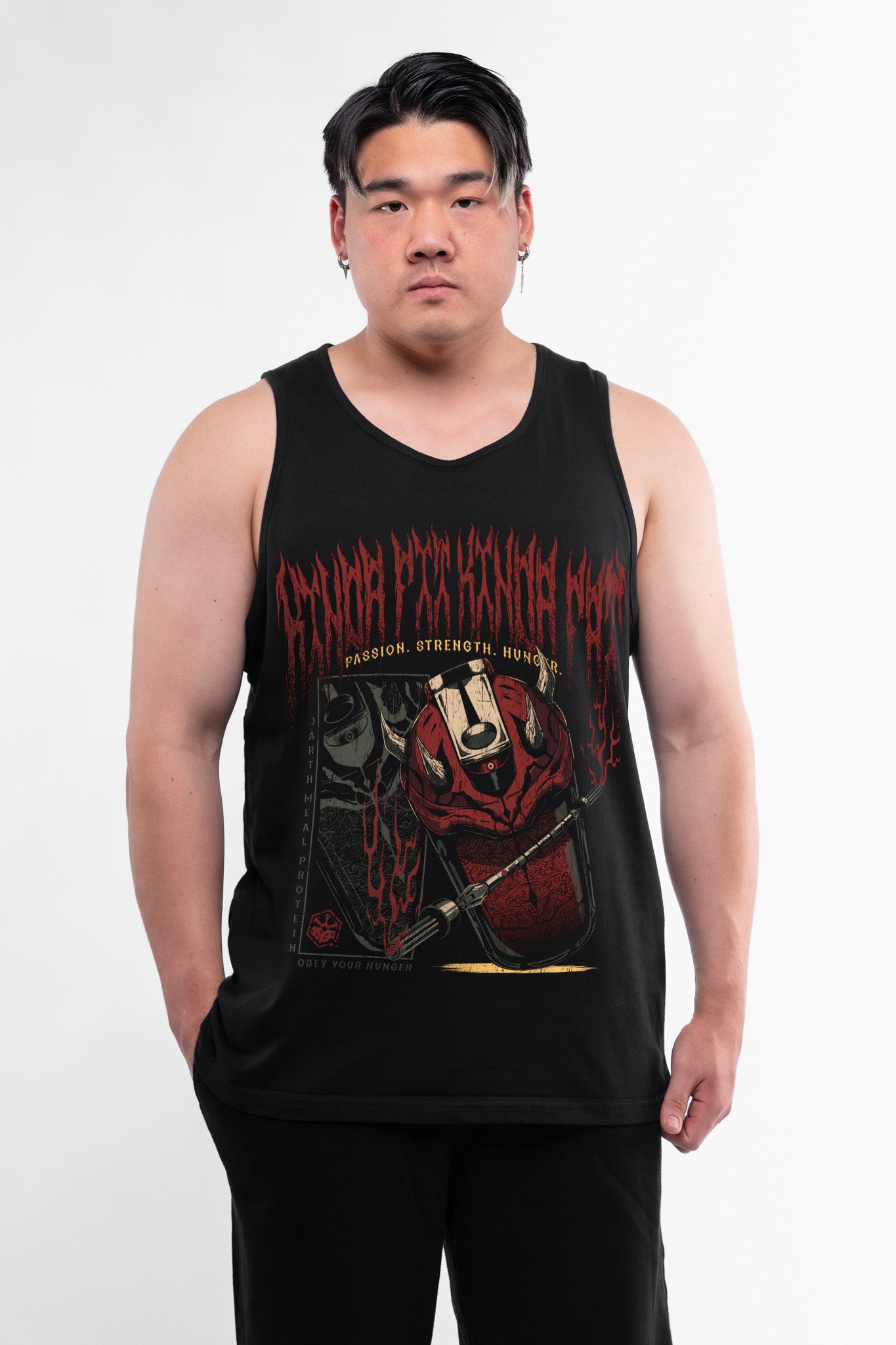 Forged in rage. Sharpened by suffering. Rebuilt by vengeance. Darth Meal is tribute to the relentless power of the dark side for those who attack every meal with the same precision as every workout — with passion, strength, and hunger. Feed the fury and lock in your gainz with a tank top to show off the force pulsing through your veins!