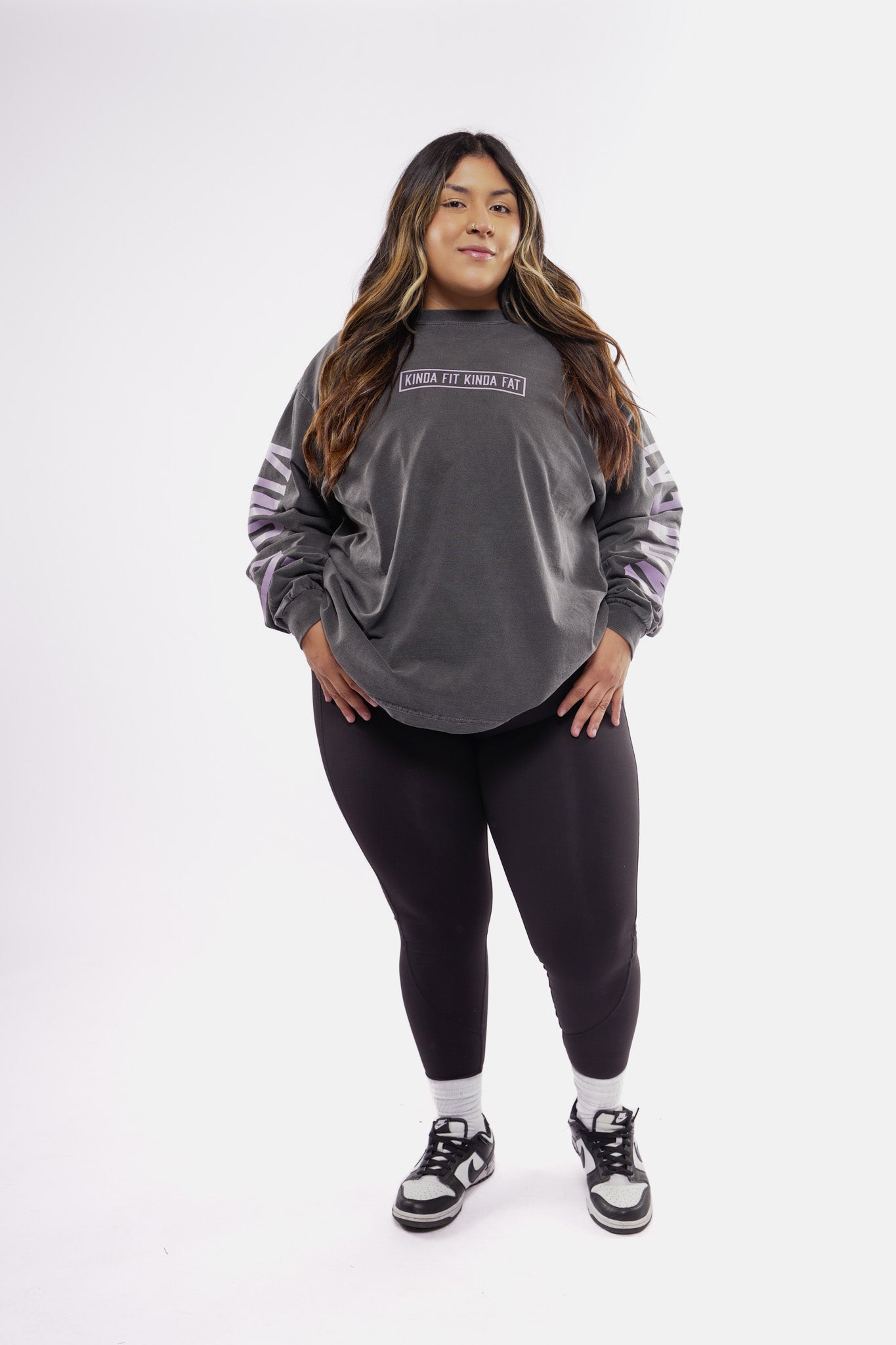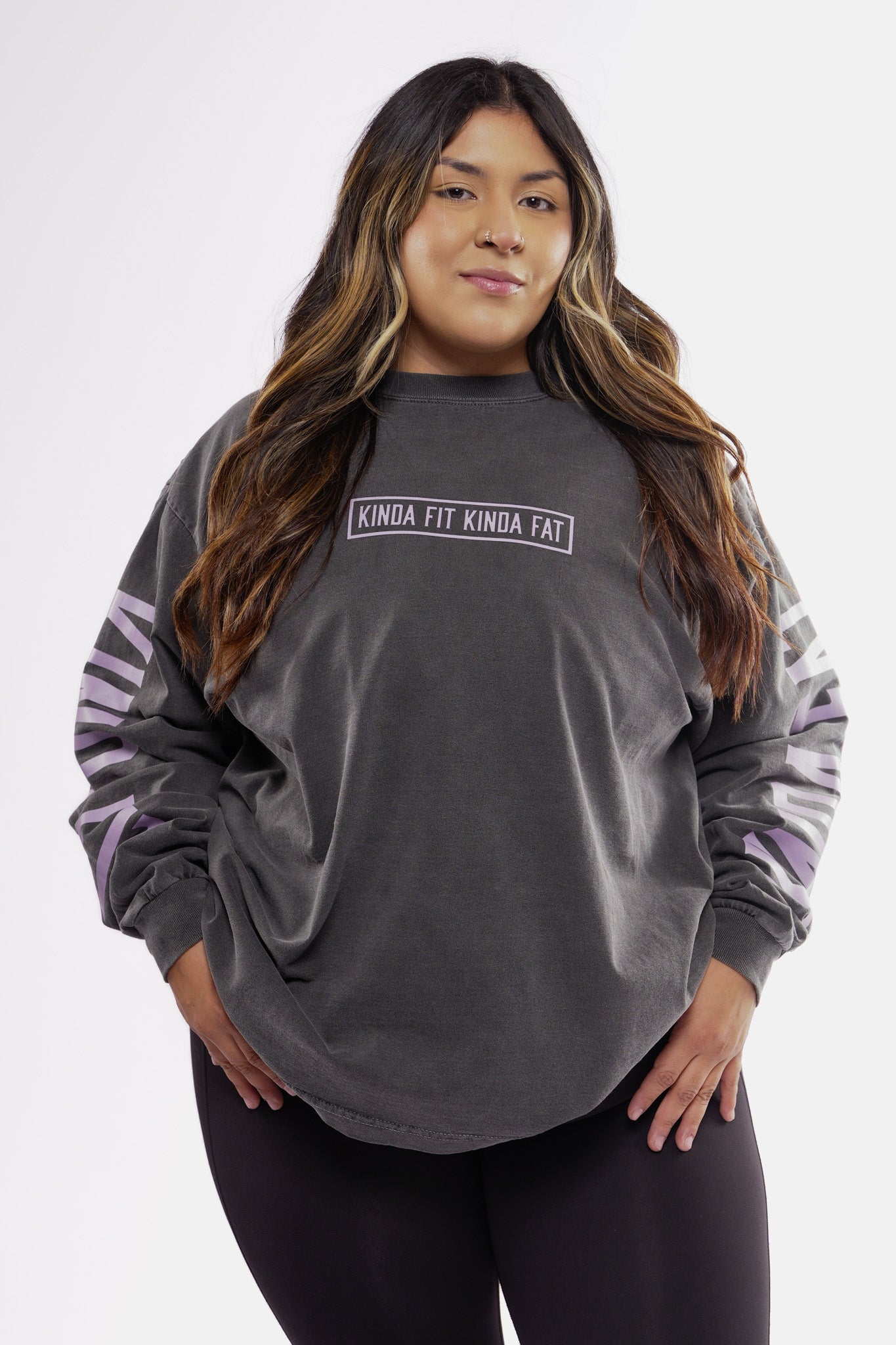 Upgrade your basics with our Premium Oversized Longsleeve! With "Kinda Fit" and "Kinda Fat" printed on the sleeves, our iconic box bar logo printed front and center, and our classic icon logo printed on the back, proudly represent the KFKF lifestyle with a streetwear inspired look.