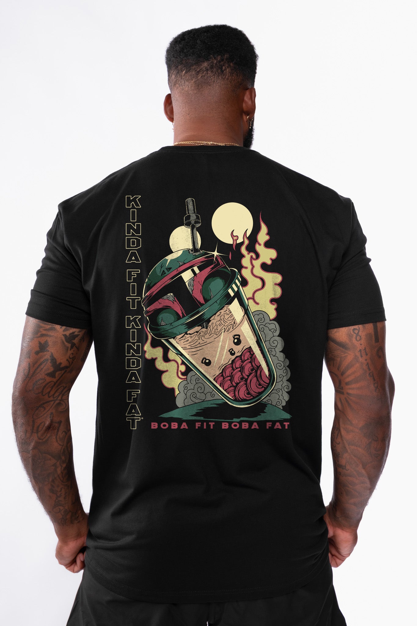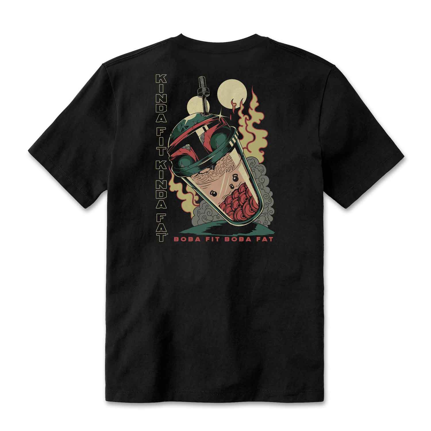 Quench your thirst with our Boba Fit Boba Fat Signature Blend Shirt! Featuring our iconic mashup of the galaxy's most notorious bounty hunger and everyone's favorite chewy drink, this battle-worn design will be back for a limited time for May the 4th. Make sure you grab this comfortable best selling shirt when you're lifting under the scorching twin suns!