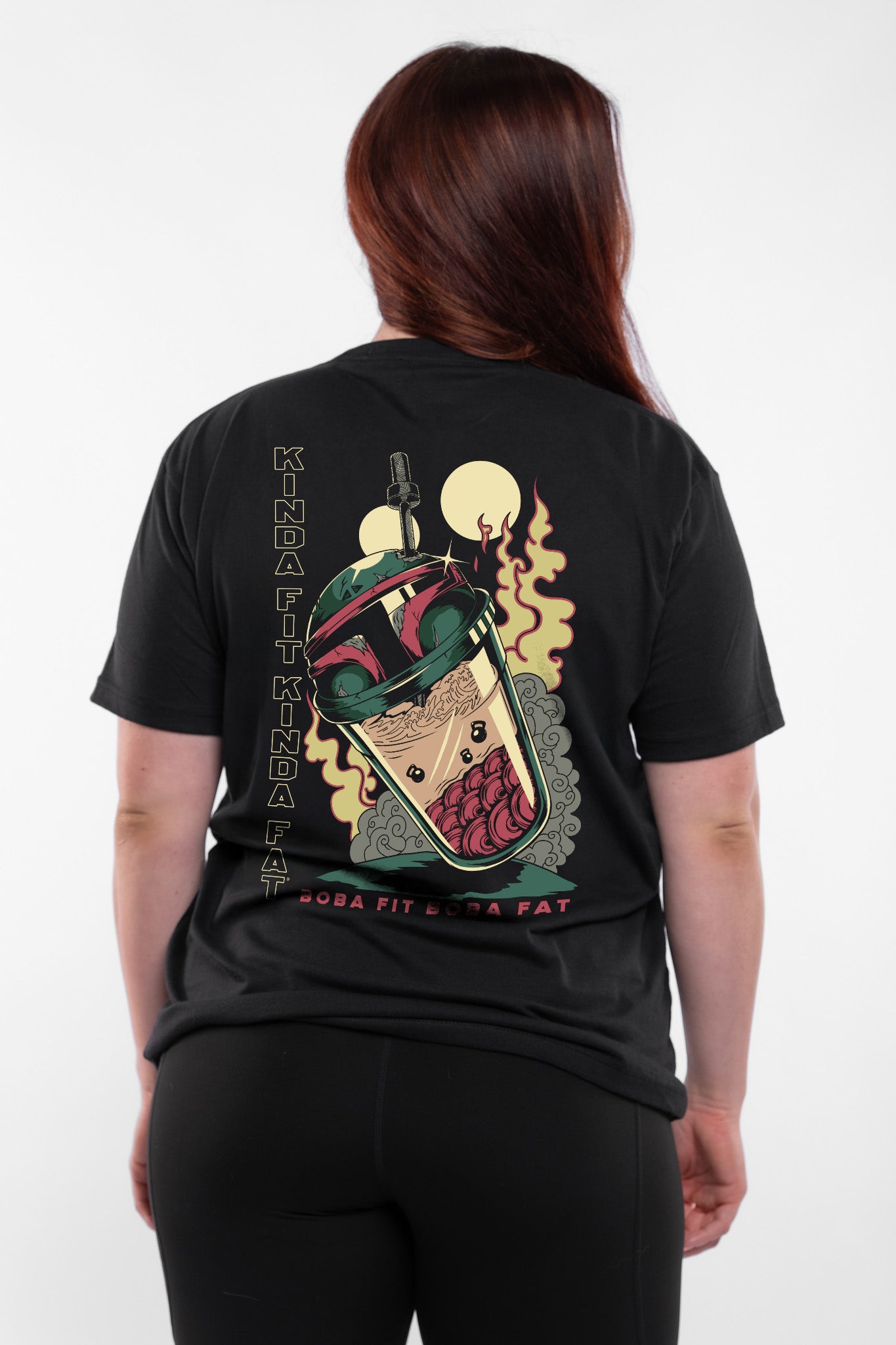 • KFKF Boba Fit Boba Fat logos printed on front chest and back