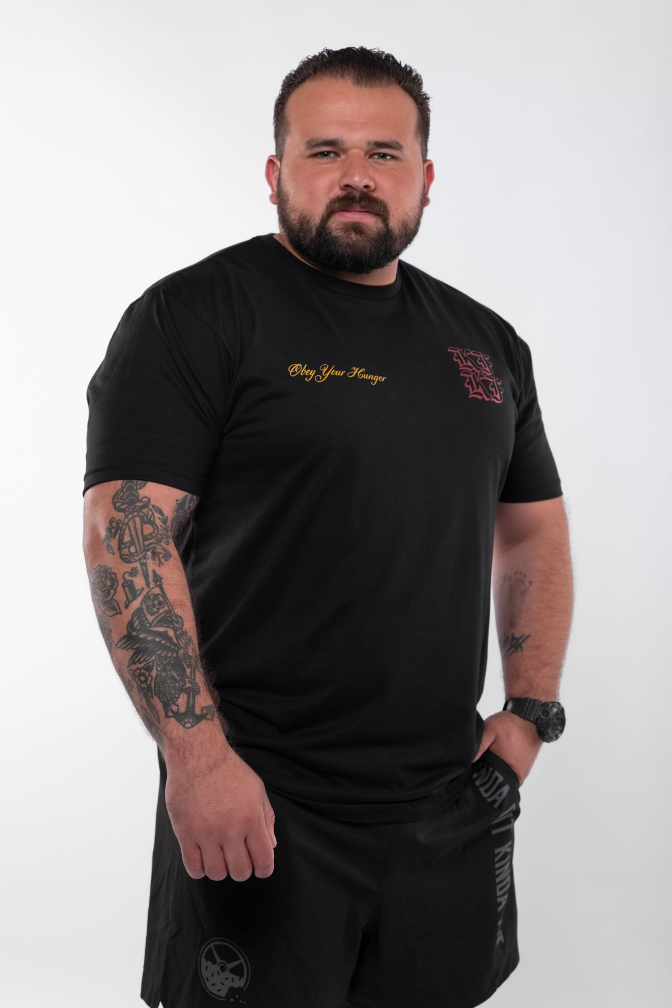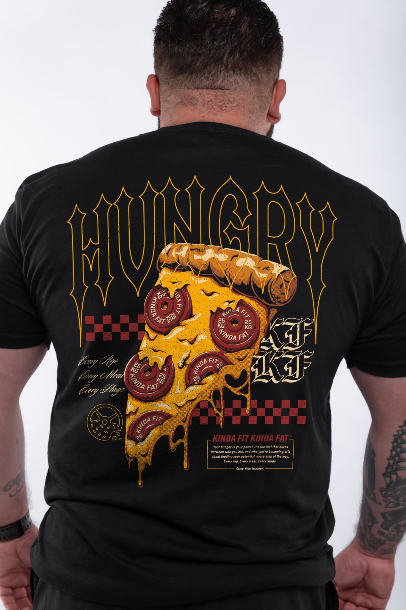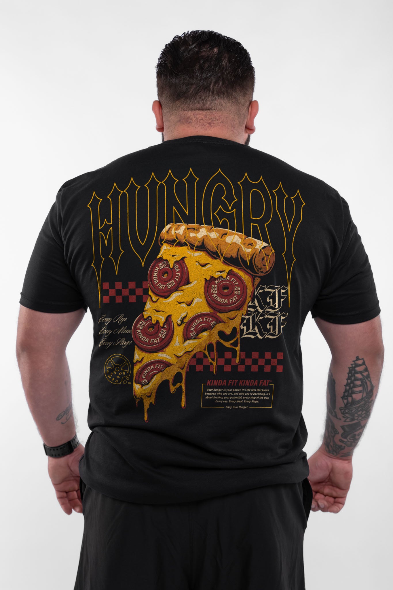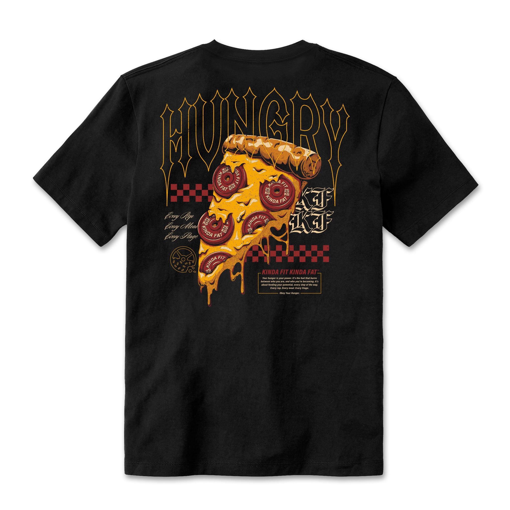 Order up! This Hot N' Ready Shirt was designed for those who are Kinda Fit, Kinda Fat, and always ready for a slice. Represent your love for pizza with this bold design! This signature blend shirt features an athletic cut, fitting the body slightly tighter around the chest and arms with room in the torso, making this a must have for any training session!
