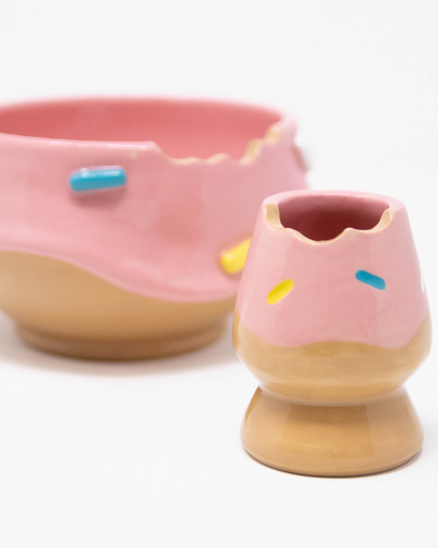 Our next specialty item on the Gourmet Gainz menu is our handmade Matcha Bowls and Whisk Stand, a limited edition ceramic collectible set to elevate your matcha experience.