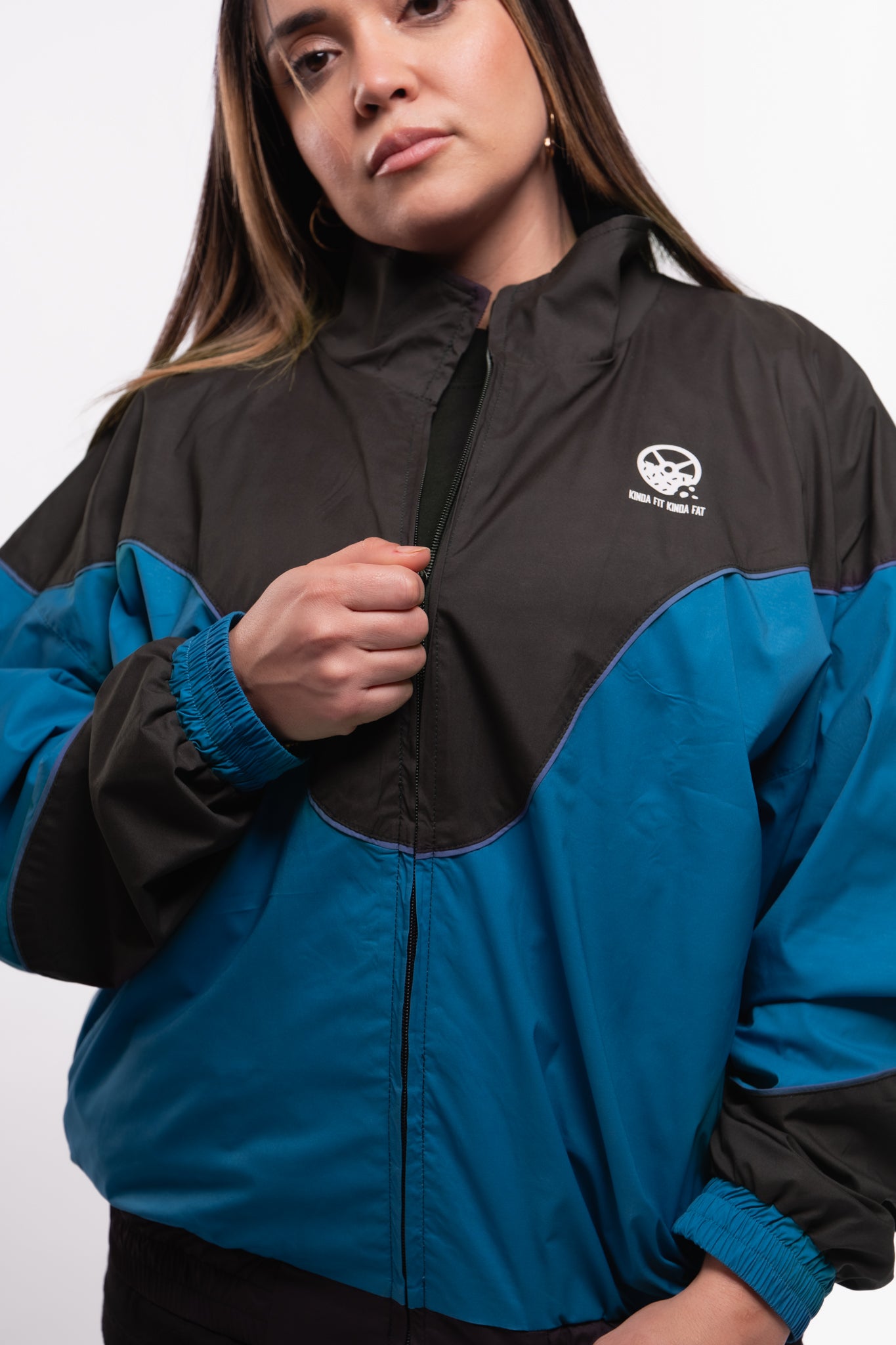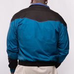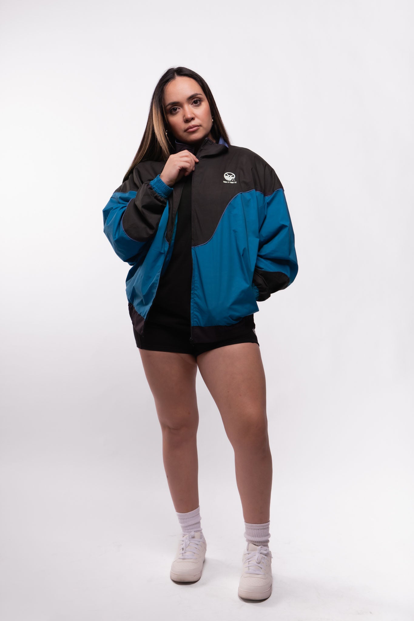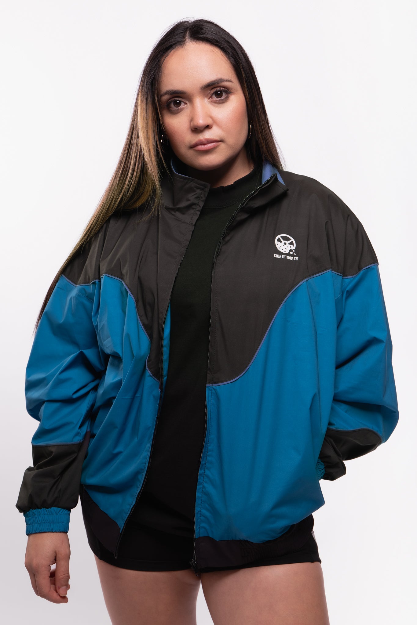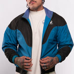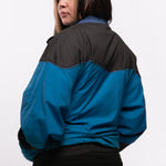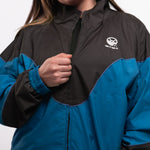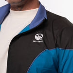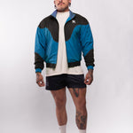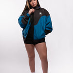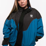 This fan favorite track jacket is back in a tasty Midnight Teal and Black Combo! Lightweight, versatile, and extremely comfortable, this stylized custom jacket features a drop shoulder, a flattering color block design, a full zip front, double lining, and 2 front pockets. Suit up in this flavorful jacket for a trendy nostalgic vibe and premium retro feel!