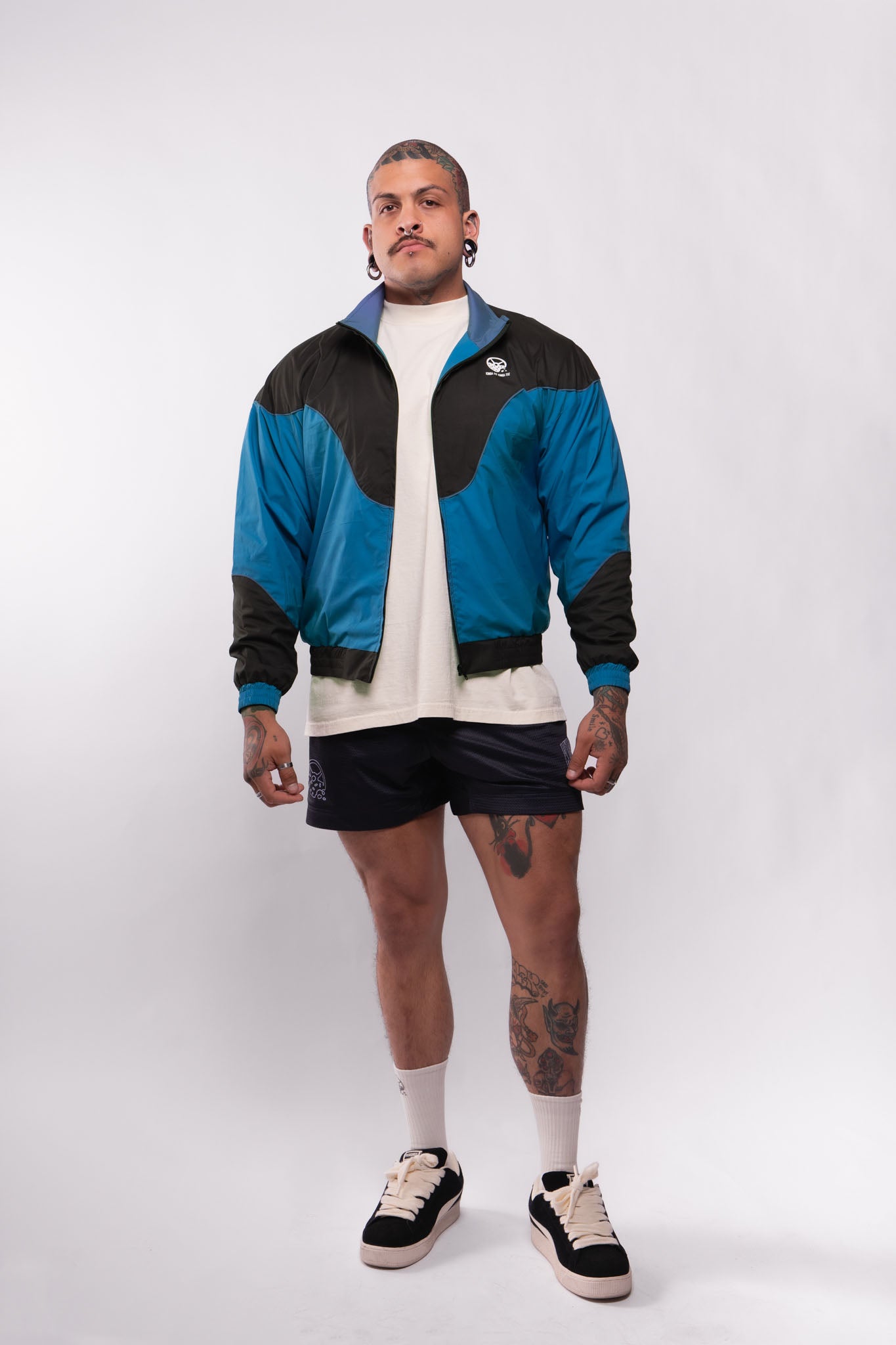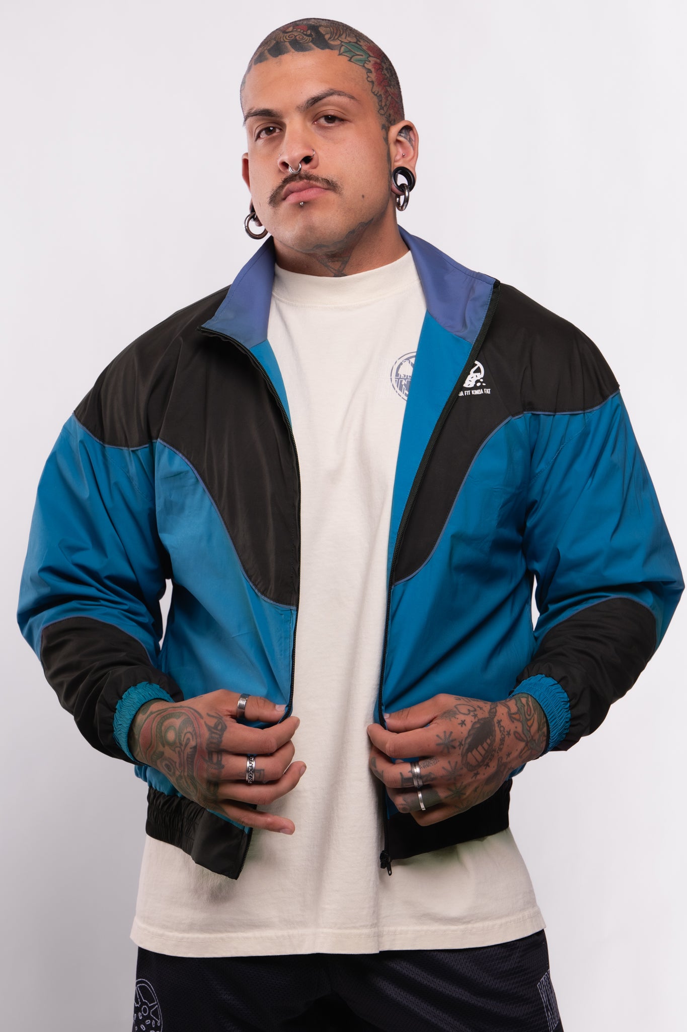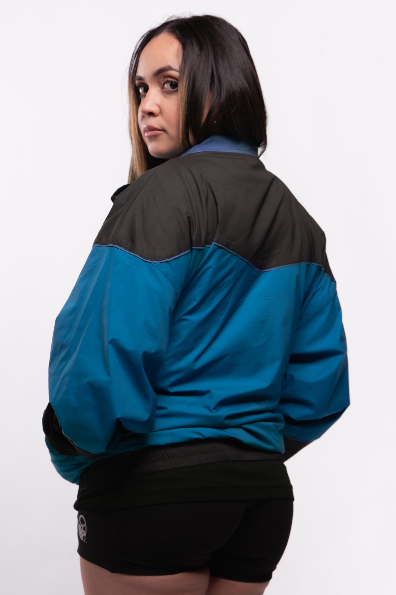 This fan favorite track jacket is back in a tasty Midnight Teal and Black Combo! Lightweight, versatile, and extremely comfortable, this stylized custom jacket features a drop shoulder, a flattering color block design, a full zip front, double lining, and 2 front pockets. Suit up in this flavorful jacket for a trendy nostalgic vibe and premium retro feel!