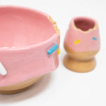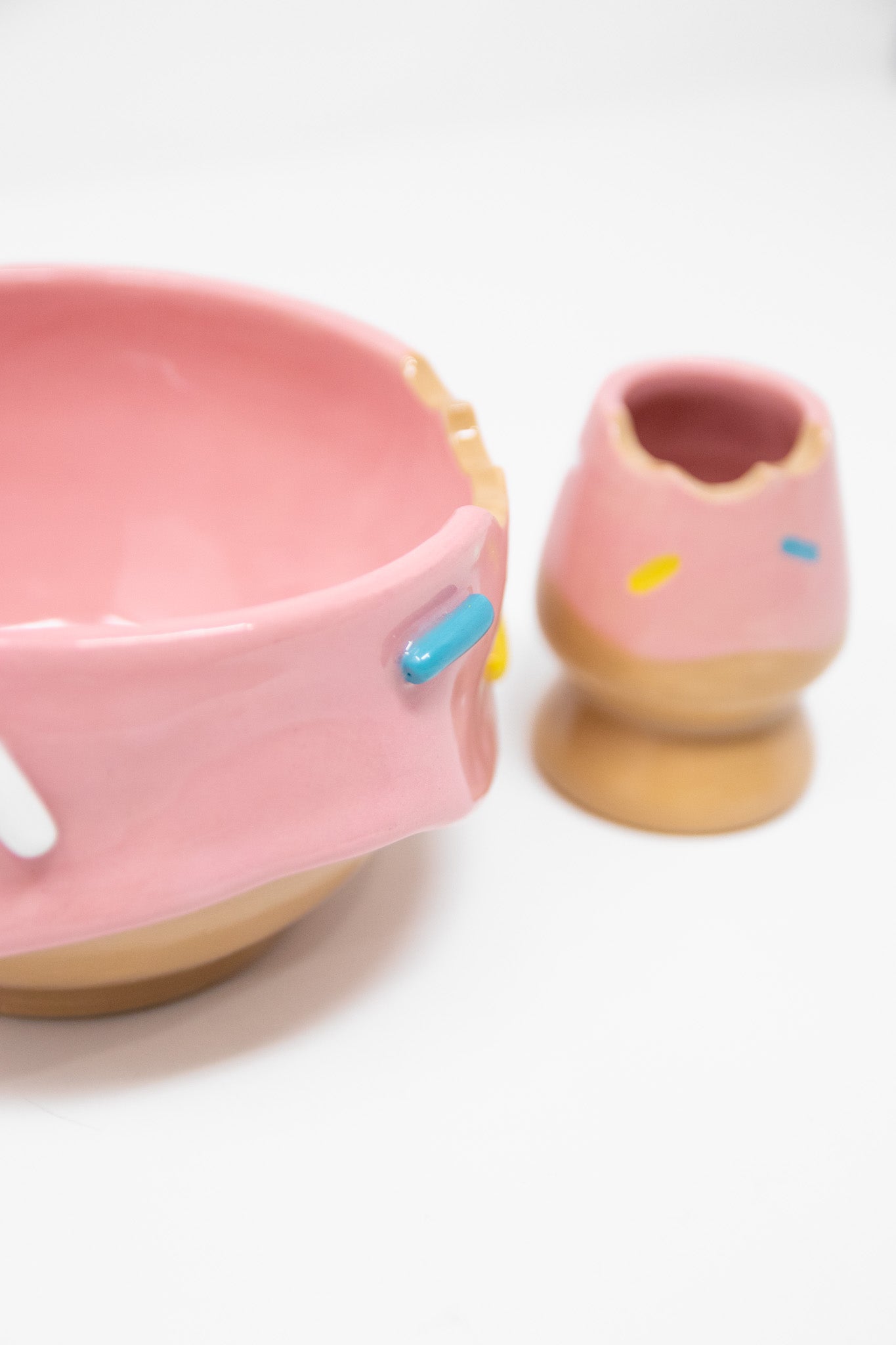 Our next specialty item on the Gourmet Gainz menu is our handmade Matcha Bowls and Whisk Stand, a limited edition ceramic collectible set to elevate your matcha experience. Every bowl is paired with a matching whisk stand, designed to keep your chasen in perfect form. Handcrafted with high quality clay, every piece is deliciously glazed to perfection, and delectably food safe. Made in small batches, every piece is a 1-of-1 and comes with a collectible box.